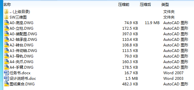2、若题目上备注三维,则表示文件里包含三维源文件,由于三维组成零件数量较多,为保证预览截图的简洁性,本站将三维文件夹进行了打包。三维及CAD预览截图,均为本站电脑打开软件进行截图的,保证能够打开,下载原件超高清,下载后解压即可;