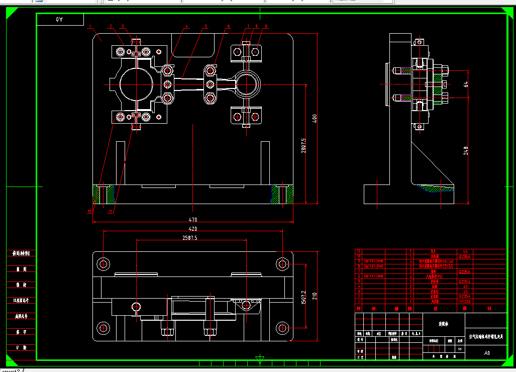 本篇设计是基于UG的11ZA-1.58型空气压缩机连杆精镗大、小头孔夹具设计。连杆零件的主要加工位置是 、 内孔的加工及连杆上下,左右表面,油孔,以及 直孔的加工。一般来说,保证平面的加工精度与保证轴系的加工精度相比,保证平面的加工精度比较容易。精镗大、小头孔加工都是选用专用镗床夹具,夹紧方式一般选用手动夹紧,夹紧可靠。因此生产效率较高。能够满足设计要求。
