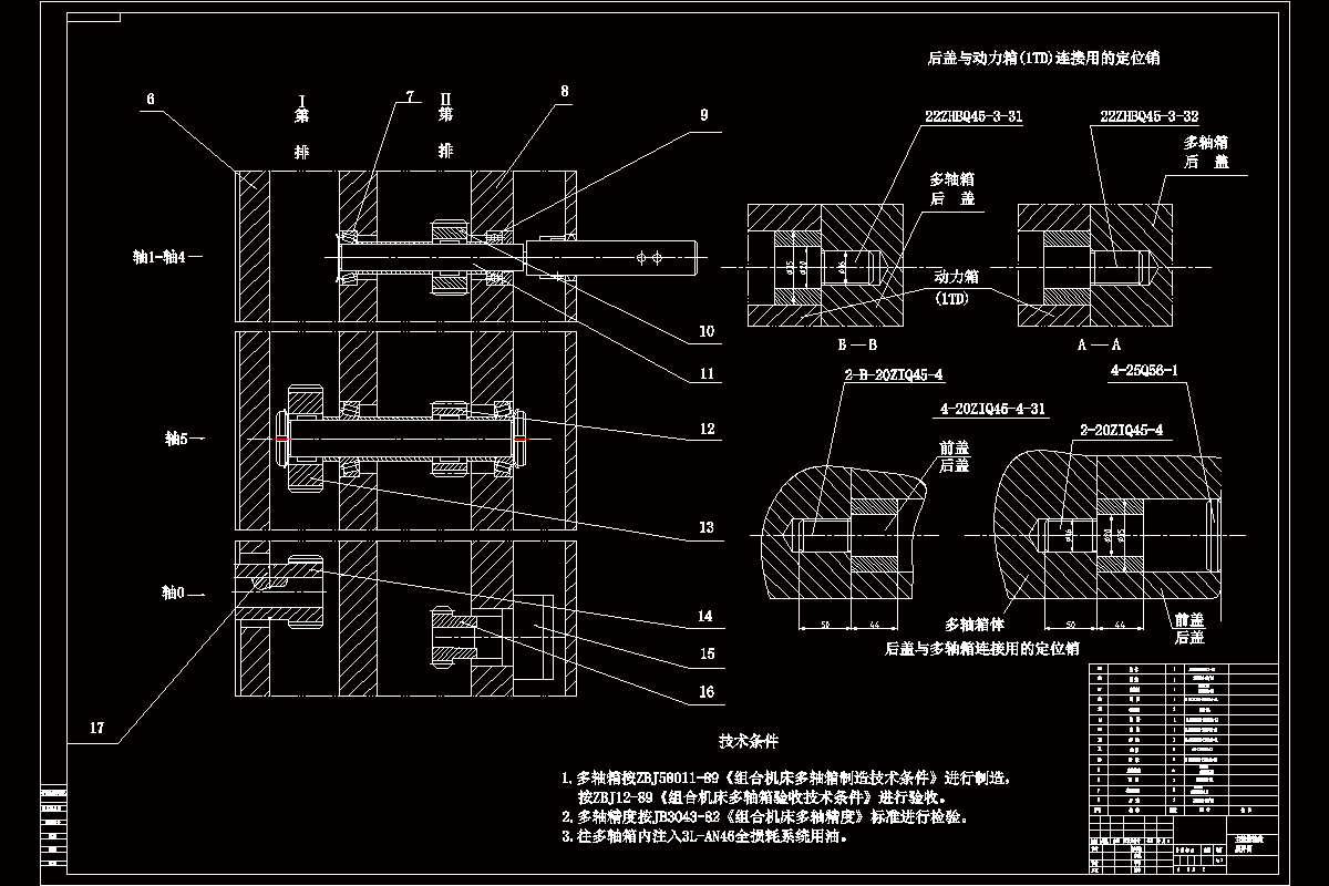 全文要包括组合机床的总体设计和主轴箱设计两部分。机床总体设计要是在选定工艺方案并确定机床配置形式、结构方案基础上确定“三图一卡”,主轴箱设计根据“三图一卡”,整理编绘出主轴箱原始依据图,重点分析传动系统,经过各种方案的比较,最后确定最优方案,按照所给加工部位要求设计出夹具装配图。