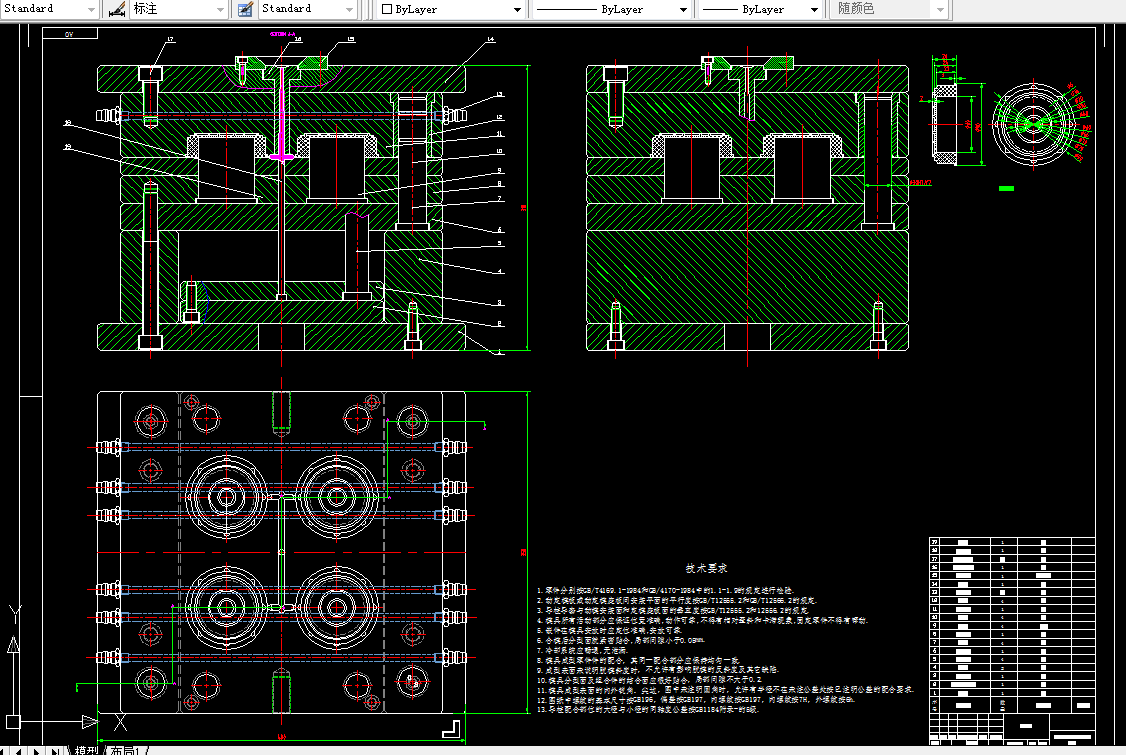本次设计主要对中空桶盖注射模的设计,提出了模具设计的关键点,设计了模具的整体结构。根据塑件分型面的位置,设计了推件板推出结构,零件采用了单分型面的侧浇口,提高了注射的质量。通过对塑件进行工艺的分析及其结构分析,从产品结构工艺性,具体模具结构出发,对模具的浇注系统、模具成型部分的结构、顶出系统、注射机的选择及有关参数的校核都有详细的设计。该模具一模四腔经过生产验证,该模具结构合理,动作可靠。