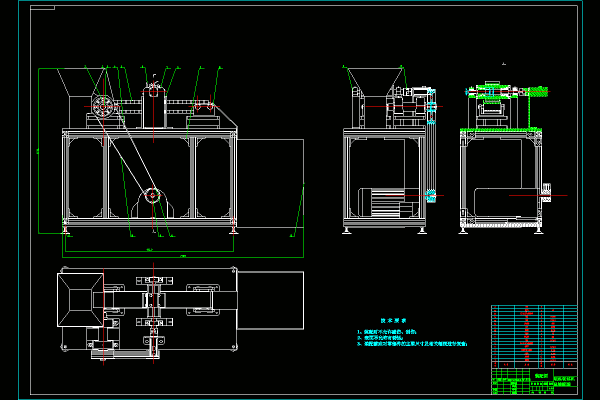 整机结构主要由电动机减速器产生动力通过小带轮将需要的动力传递到大带轮上,带轮带动主轴,从而带动整机装置运动,此可以代替人手的繁重劳动,显着减轻工人的劳动强度,改善劳动条件,提高劳动生产率和生产自动化水平。