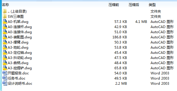 2、若题目上备注三维,则表示文件里包含三维源文件,由于三维组成零件数量较多,为保证预览截图的简洁性,本站将三维文件夹进行了打包。三维及CAD预览截图,均为本站电脑打开软件进行截图的,保证能够打开,下载原件超高清,下载后解压即可;