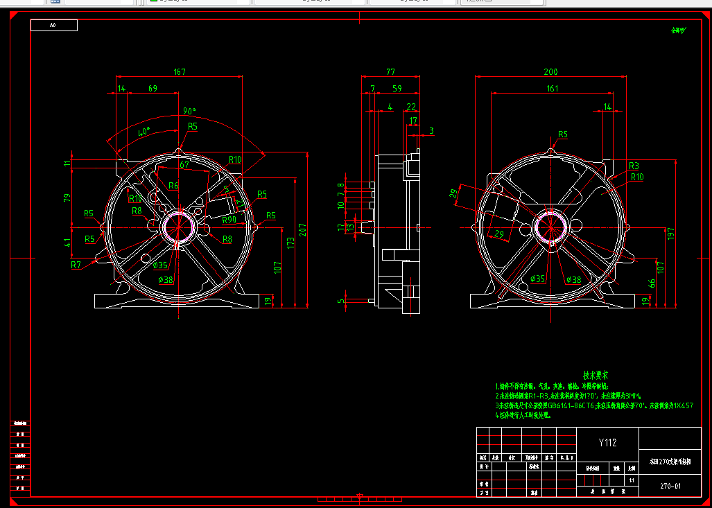 本次设计的主要内容是本田270支架加工工艺规程及镗 孔镗孔夹具的设计。本田270支架主要是用在汽车上面,其主要加工表面及控制位置为 左右两端面和 内孔。由零件要求分析可知,保证 左右两端面的厚度尺寸和 内孔尺寸的同时应该尽量保证其垂直度,这对于后工序装配和总成使用上来说都有重要影响。所以,工序安排时,采取以 左右两端面粗定位夹紧加工后,对 孔进行镗削加工同时成型。因其粗糙度为Ra1.6,可通过粗镗、精镗满足。本文的研究重点在于通过对本田270支架的工艺性和力学性能分析,对加工工艺进行合理分析,选择确定合理的毛坯、加工方式、设计高效、省力的夹具,通过实践验证,最终加工出合格的本田270支架零件。