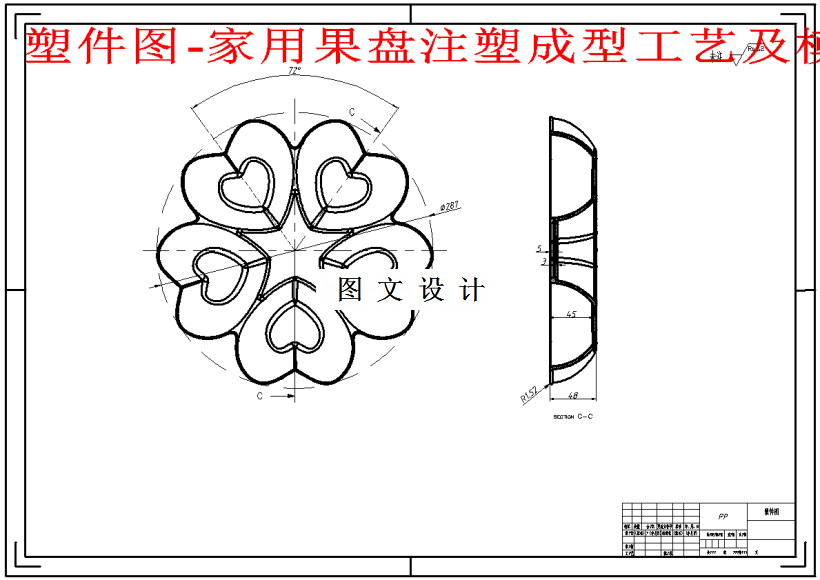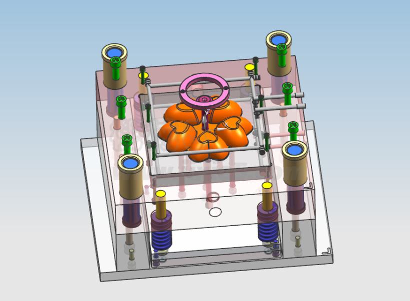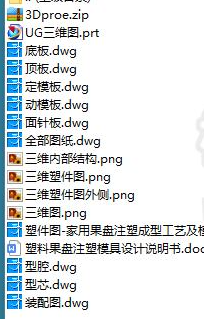 今次的课题为模具设计,所甄选指定塑胶件是塑料果盘,此塑胶件外廓规格还算为家常所见中相比下,属于中等规格。类型方面属于普通物品,可随处可见,消耗使用量超大的一款塑件制品零件。这次设计先分析塑料果盘制品的工艺与技术信息规定,并创作多个设计技术方案预设,最后甄选结果后,进入真正的模具结构绘画3D建模,定要确保模型设计上的合理性,因此腔数选定、填充入口的方式、脱模要顺畅,推出行程要精确。因此着重点计算精确后选取最佳方案进行建模绘画:成型、浇注、脱模与推出四大方面之后,跟着要完成模架调用、冷却管道路线设计、困气解决表现。并考量到模具与注射机的对接配合,模具需作出的配合设计。最后再完成整体设计细微部分完善与各工件的紧固机构设计,并制作二维图纸。