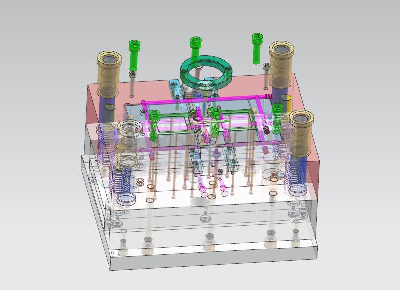 本所讲的设计是手机支架前面板注塑模具设计,本文细明的叙述了注塑模具。成型时的成型工艺。以及模具制造的制造技术及研究会画模具图的全部流程。然后再对本零件的实行使用性以及结构上面的进行比较详细的分析及工艺过程来演示分析,并学习和使用三维等软件进行绘图和分析。本文列出了注射机的各项参数及选择的重要根据,并进行了对主要的参数做了一系列进行了计算与重要部位的校核。本文对模具各主要模具零件的设计时应按原则的参考,在结构的设计的过程当中举出了部份例子进行参考,本文对手机支架前面板进行了详细及较为精准的分析。在零件的分型面确定及选择这个重点上面,一模二腔,采用了侧浇口变形填充。最后对设计模具调节模具温度的水路这些重点内容进行了分析及比较,论证了零件的成型质量和调节模具温度的水路之间的关联性是多重要,清楚地表明了模具的冷却水进、出时温度以及加热和冷却量,最后给定模具面积的冷却、模具水路冷却直径。经过所有模具构件设计完成后,对此模具进行安装到注塑机上面的方式进行概述,并对在试验模具及生产的流程当中有出现问题的可能做出了分析,并指出了这些问题对应改善及避免的方法。通过整个三维数字化设计的过程,这样设计过程变得非常容易,而且还可以及时发现一些设计中的问题,比如模具潜在问题,还有干涉及不合理这类失误。