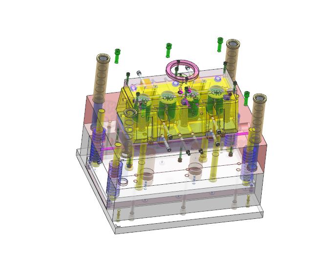 日常生活用品飞速发展,在本次课题中,选择了日常生活用品的典型零件,盘丝包装筒来作为本次设计。分析了盘丝包装筒结构,选择一个适合这个盘丝包装筒的材料。根据盘丝包装筒的结构,设定并且选择了分型面,确定了模具型腔的出模数量为一模四腔盘丝包装筒产品。在浇注系统的设计上面,我采用了常见的侧浇口浇注系统,这种浇注系统的流程短,流道的废料少,经济性满足要求,在盘丝包装筒的顶部有叉头,底部有螺纹需要采用抽芯机构才可以成型,这个机构增加了模具设计的难度,但是这是盘丝包装筒必须有的。在成型系统的型芯和型腔机构的设计上面,采用了镶嵌式的型芯和型腔,这种型芯和型腔更好的加工和更换维修,可以保证模具有更高的寿命,针对这个盘丝包装筒模具,还设计了一种能够环绕盘丝包装筒塑件的冷却系统,让成型的周期尽可能的缩短。在顶出系统的设计上面,设计了模具中最常用的推板顶出机构来让盘丝包装筒更加容易脱模。结构上完成分析和设计以后,使用三维的软件,通过建模,实现模具的全三维总装图的绘制,通过使用二维软件AUTO CAD,绘制模具的二维总装图,塑件图,非标零件工程图,在最后,进行注塑机的选择,确定锁模力,注塑量等相关尺寸的校核