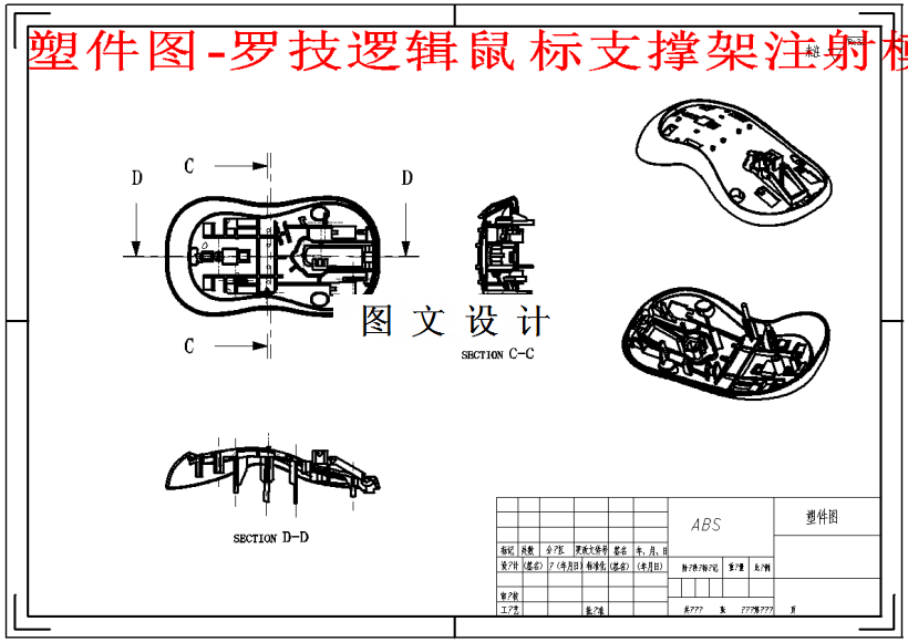 本文涉及罗技鼠标支撑架注塑模型的设计,设计过程参照相关国家机械行业标准,在零件的制造、装配及相关标准件方面都严格按执行相应规范,设计过程中涉及机械设计、塑料成型模型及成型工艺、高分子材料等资料。