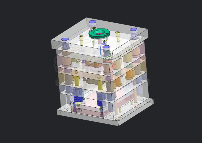 在完成前面的结构设计方案之后,进一步的通过机械设计软件来实现建模,通过采用UG NX软件完成三维模具总装图的建模。采用Auto CAD软件来完成二维总装图的绘制,非标零件工程图绘制。并编制说明书来校核整套模具设计。