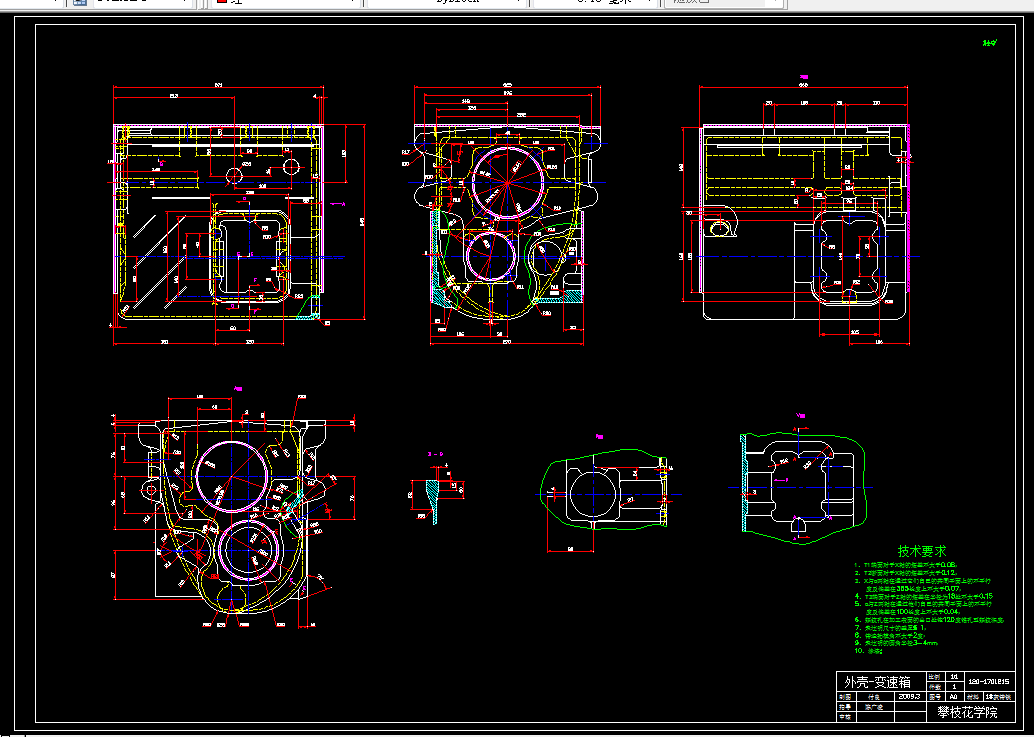 本次设计的主要内容是汽车变速箱加工工艺及铣平面和钻孔夹具的设计,本文的研究重点在于通过对汽车变速箱的工艺性和力学性能分析,对加工工艺进行合理分析,选择确定合理的毛坯、加工方式、设计高效、省力的夹具,通过实践验证,最终加工出合格的汽车变速箱体。