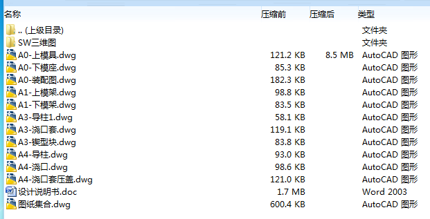 2、若题目上备注三维,则表示文件里包含三维源文件,由于三维组成零件数量较多,为保证预览截图的简洁性,本站将三维文件夹进行了打包。三维及CAD预览截图,均为本站电脑打开软件进行截图的,保证能够打开,下载原件超高清,下载后解压即可;