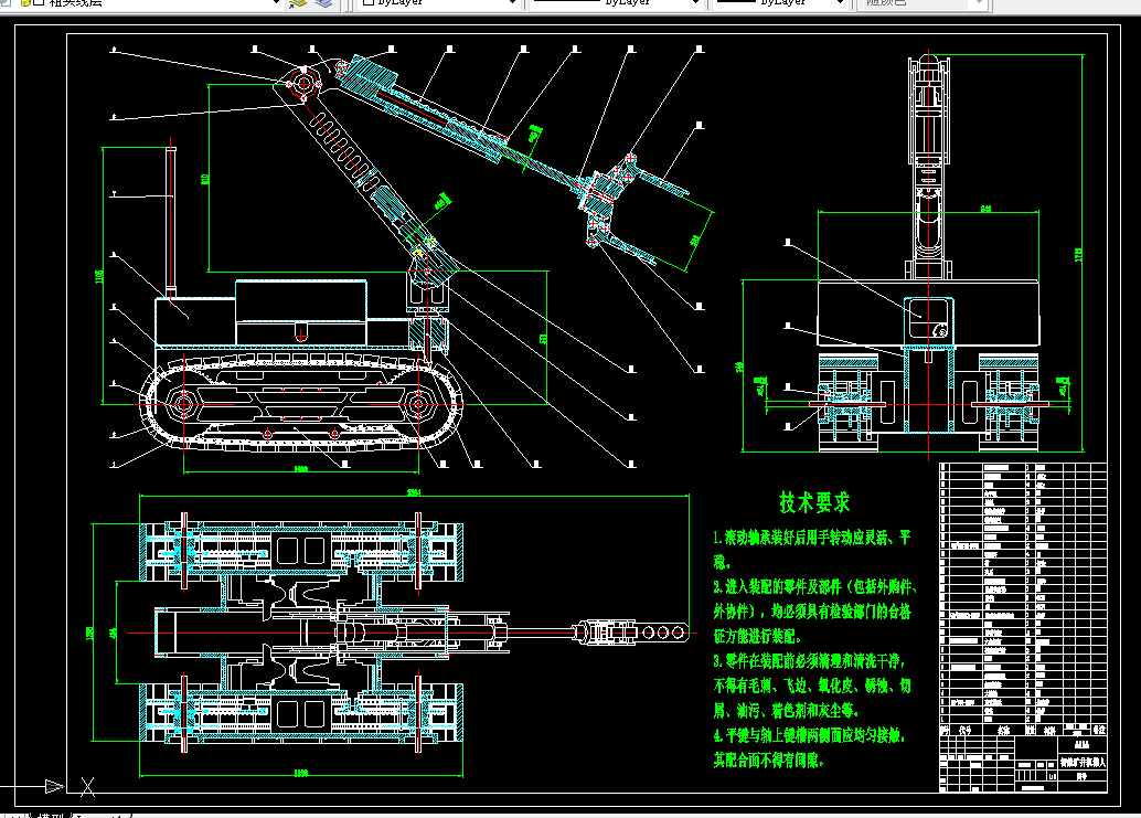在本次的设计上,根据现有技术的实际生产环境的能力,设计实现自动化控制的履带式的智能矿井机器人,设计两幅履带结构形式,通过链条和链轮的传动方式实现前进履带的智能矿井的过程,达到设计的基本要求。能够实现的复杂的环境下达到行驶的稳定性。在结构设计上设计多关节的自由度结构,通过支架实现在中关节上的柔性操作,实现跨越提升智能矿井行驶的过程中实现机械手工作的特点。在设计过程中,通过查阅相关的设计资料,了解智能矿井机器人的结构形式,结合机械传动上的支架设计的基本结构形式,确定总体结构方案实现在行驶上的参数化计算设计,对方案进行设计分析,选择合适的电机。通过三维软件SolidWorks对机构进行了三维造型设计。根据设计尺寸,用软件绘制导出相应的CAD设计结构工程图。