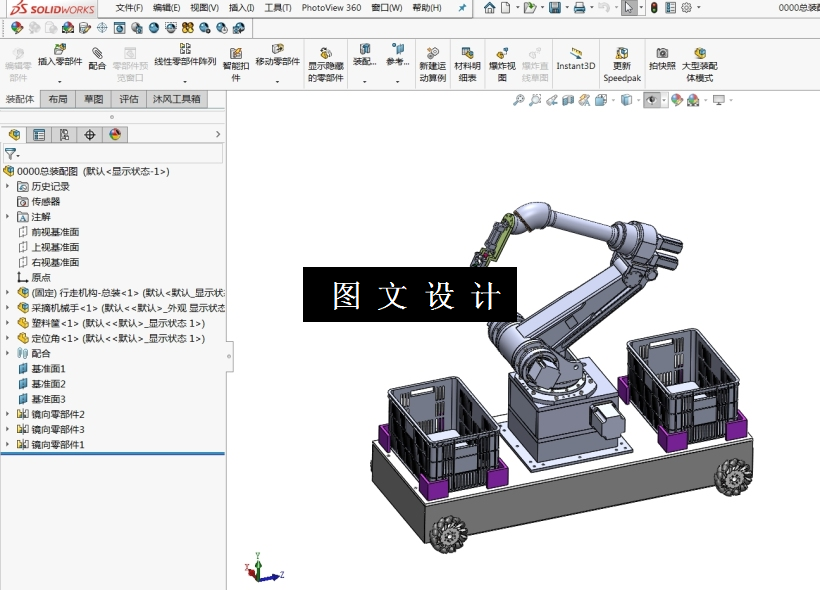 我国黄瓜种植面积位居世界第一,在农业经济发展中占据重要地位。目前我国的黄瓜采摘作业基本依靠人工完成,人工采摘劳动强度大、生产效率低、生产成本高。黄瓜采摘机是一种自动化农业生产的关键设备,能够提高黄瓜采摘效率。 本论文通过分析黄瓜采摘的工艺流程和要求,设计了一种具有多功能、高效率、稳定性和适应性的智能黄瓜采摘机。在腕部装置部分,本文腕部结构的精简、重量的减轻,要确保力量传递和运动准确,还要兼顾其强度和刚度。在机械手臂部装置部分,臂部具备强大的承载能力、优良的刚性和轻质化,加强支撑点的稳定性,合理分布受力点和方向。在抓手装置部分,采用的是双指夹持模式,内部抓取方式,利用销钉将上部和下部的气动抓连接在一起。在黄瓜采摘机驱动底盘装置部分,采用主动翻转滚筒轴和变速器轴通过四驱车轮带动传递,能够把机械手臂移动到指定位置。 本文采用三维软件设计出各个零部件,完成了三维装配建模,将主要受力零部件用solidworks进行了有限元分析,确保设计的机械前度能够满足需求。