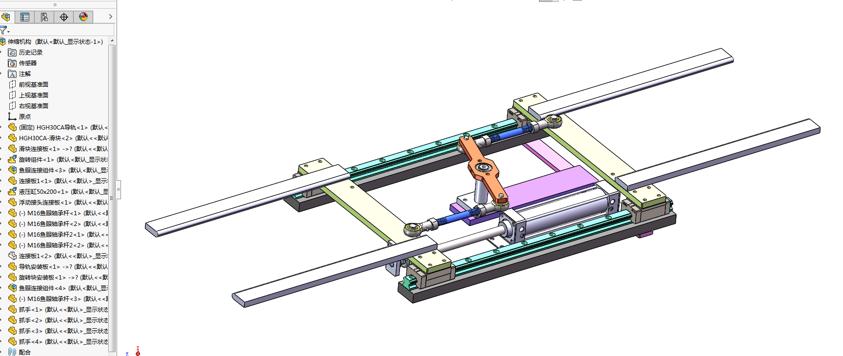 如何利用有限的城市空间提供更多的停车位,成为一个需要解决的城市问题。一方面与普通停车场相比,立体车库可以在同一区域容纳更多的车辆。另一方面,与地下车库相比,立体车库的建设成本更低,可以适应不同的客户需求。因此,深入研究立体车库技术,实现一个安全、可靠、稳定的立体车库系统,是一项非常有意义的工作。梳齿伸缩的目的是方便搬运机构整体能行走到汽车底部,然后将梳齿伸出到汽车轮胎位置,通过顶升机构将汽车升起来脱离地面。其中梳齿伸缩机构通过液压缸伸缩带动旋转结构旋转,然后通过连杆带动梳齿实现伸缩功能。 本文针对汽车搬运的实际需求,设计了一种升降式梳齿汽车搬运器。首先,对市场上已有的汽车搬运器进行了调研和分析,针对其存在的问题,提出了升降式梳齿汽车搬运器的设计方案。其次,使用SolidWorks软件对该搬运器进行了三维建模,并进行了机械结构与动态仿真分析,验证了其设计的合理性。最后,对该搬运器的性能指标进行了测试和分析,结果表明该搬运器具有较好的搬运效率和稳定性,能够满足实际应用需求。本文的研究成果对于汽车搬运领域的发展具有一定的参考价值。