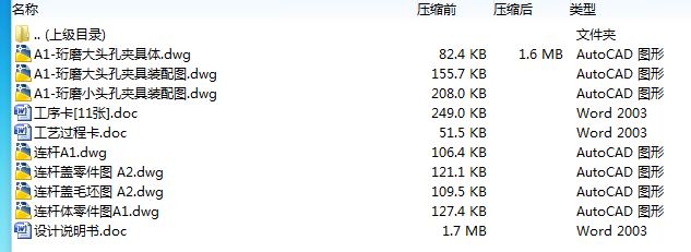 本次设计任务就是连杆机械加工工艺及珩磨大小头孔夹具设计,这次工艺过程包括:铣连杆两端面、钻孔、铣连杆结合面、珩磨大、小头孔等工序。同时 ,我希望这次设计能超越目前工厂的实际生产工艺,提高加工效率,降低生产成本;而将有利于加工质量和劳动生产率提高的新技术和新工艺应用到机器零件的制造中,为改善我国制造业相对落后的局面探索可能的途径。我也希望通过这次学习能过为我以后的工作进行一次综合训练和准备。