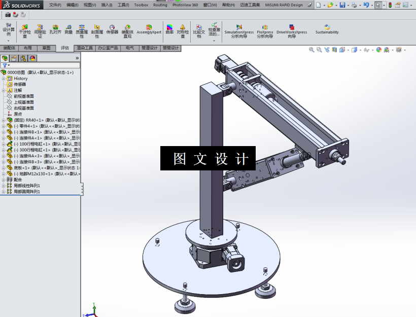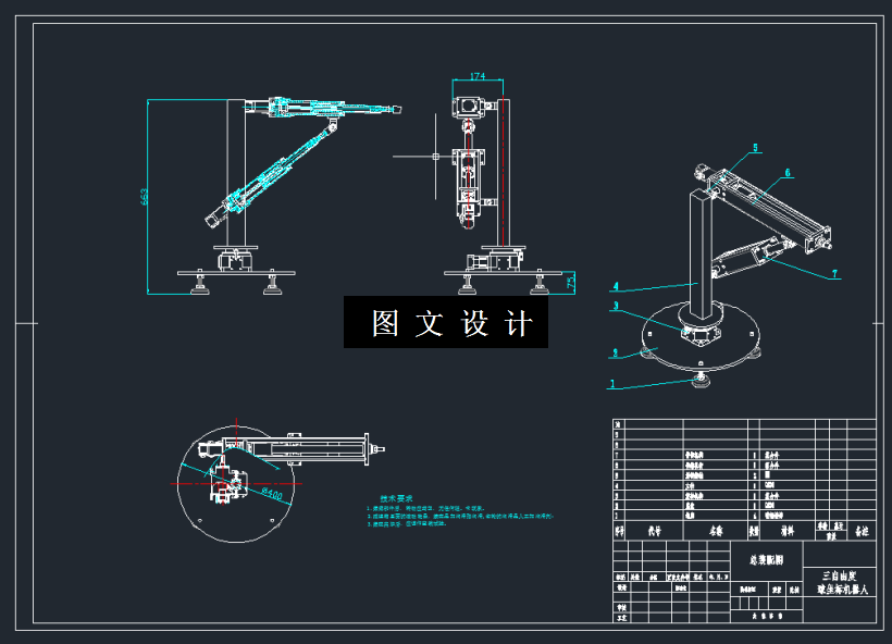 设计的三自由度球型坐标机器人可实现:手臂俯仰、手臂回转、手腕伸缩。 机器人采用电机驱动,初步估计要用到3个不同型号的电机,手臂俯仰电机,带谐波减速;手臂回转电机,带谐波减速;手腕伸缩电机,与滚珠丝杠直连。末端负载5-10Kg,转动副±45°,移动副300-400mm,末端最大移动速度1m/s,欢迎下载