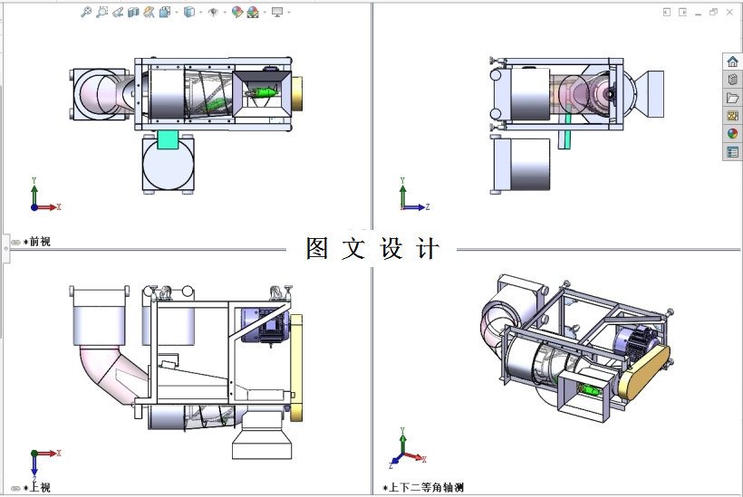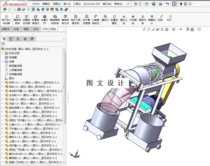 本文设计是一款采用挤搓原理的板齿玉米脱粒机。通过查阅研究资料收集研究数据,对玉米脱粒机进行系统性分析,选用合理的布局和结构对玉米脱粒机设计。设计中使用数字化建模的分析方法,首先设计玉米脱粒机的各个结构部件,并在计算机上用SolidWorks建立玉米脱粒机的三维数字化模型后进行结构分析,根据分析结果修改设计尺寸和结构,直到得到符合要求的设计结果
