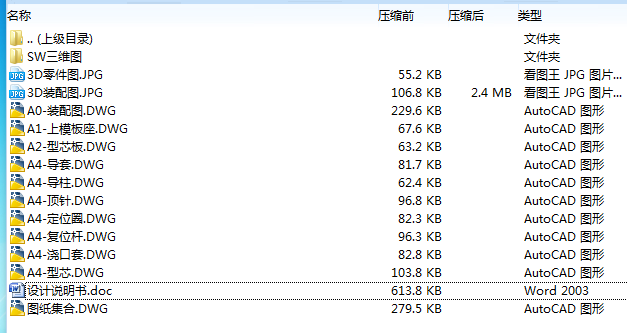 2、若题目上备注三维,则表示文件里包含三维源文件,由于三维组成零件数量较多,为保证预览截图的简洁性,本站将三维文件夹进行了打包。三维及CAD预览截图,均为本站电脑打开软件进行截图的,保证能够打开,下载原件超高清,下载后解压即可;