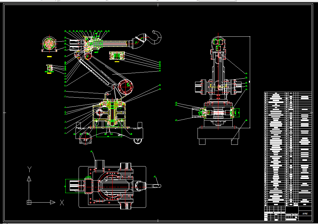 本论文主要对 小型机械吊装装置传动方案进行分析,对其结构进行分析。其传动机构包括腕关节、大臂、小臂及腰身传动机构,并对机械臂的驱动方式进行设计和分析,依照计算和校核的结果,对驱动运动的电动机进行选型;在对其工作空间分析的基础上,对关键的零部件的结构进行受力分析及强度校核;根据其基本结构参数,利用Solidworks2017软件对小型机械吊装装置进行三维建模并在solidworks环境下模拟 小型机械吊装装置的装配和运行,确定设计符合要求后使用CAD软件绘制可以进行加工的关键零件图和指导装配的装配图。