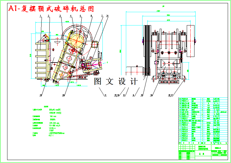 国际中所使用的颚式破碎机类型很多,其中最常见的是复摆式颚式破碎机,它已有140多年的历史,在人们不断从实践中的完善以及改进,其结构和机械参数变的更加合理和优越,因为其结构简单,并且制造容易,操作更加可靠,维修也方便了许多,因此在冶金,矿山,等诸多行业中被广泛应用。随着现代工业的发展对破碎的需求越来越高。此次设计为满足生产和需求:进料口尺寸:900×1200(mm);出料口尺寸:100-200(mm);进料块最大尺寸:750(mm);产量:150-300吨时。其中重点研究的是传动的设计和系统整体的优化。