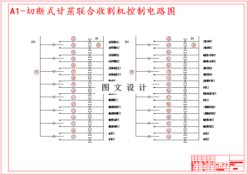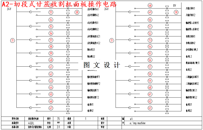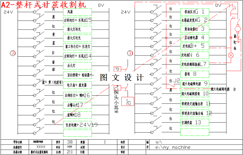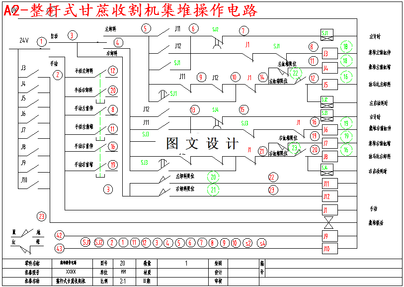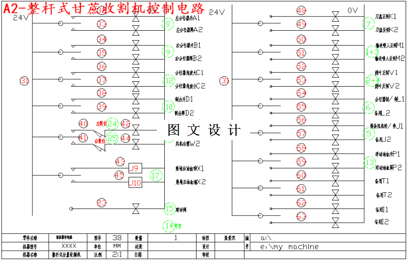 这是一份很具有设计参考价值的方案,希望审核人员不要以模型简单退稿,再三斟酌。针对甘蔗收割机在田间作业时,地形起伏变化影响切割刀盘刀片入土切割的深度,造成甘蔗根茬高度变化、根茬破头等问题,设计了一种基于AT89S52单片机的刀盘高度浮动控制系统。采用超声波测距雷达测量刀盘刀片最前端位置以及对应切割刀盘刀片最前端处垄间地形变化情况,在单片机内部对测量值进行中位值滤波处理后作为刀盘调整的参考值,对电液换向阀输出控制信号调整刀尖位置,实现切割刀盘高度随地形变化。为验证该系统的工作性能,在4GDL-132型甘蔗收割机样机上进行了试验,试验结果表明:设置刀尖与地面距离标准值为17.5cm,允许波动范围±2cm,在20m长、±5°坡度变化的路面行驶时,刀尖与地面距离平均值为17.49cm。试验结果证明,切割刀盘浮动控制系统能基本实现刀盘浮动控制,刀尖轨迹曲线与地面的轨迹曲线相同。