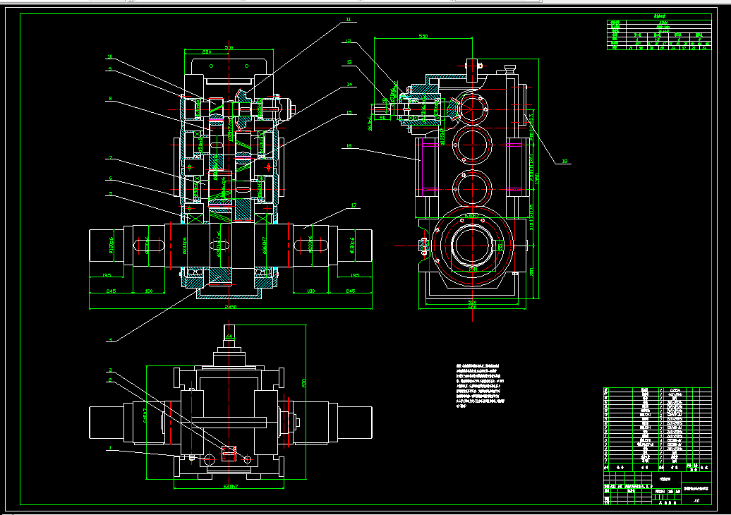 本设计讲述了炼钢排渣台车走行减速器的传动装置——四级圆柱齿轮减速器的设计过程。首先进行了传动方案的评述,选择齿轮减速器作为传动装置,然后进行减速器的设计计算(包括设计齿轮传动、轴的结构设计、选择并验算滚动轴承、选择并验算联轴器、校核平键联接、选择齿轮传动和轴承的润滑方式内容)。运用AutoCAD软件进行齿轮减速器的二维平面设计,完成齿轮减速器的二维平面零件图和装配图的绘制。