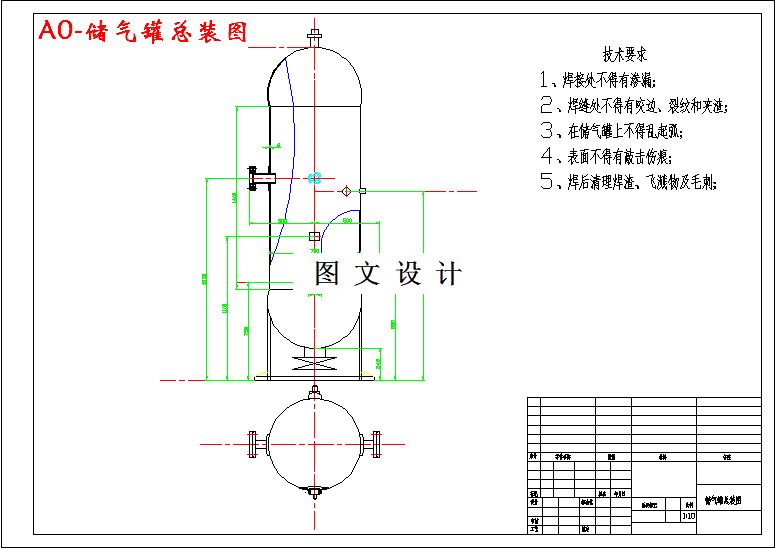 设计要求:1、设计压力P=0.9MPa;2、工作压力P=0.8MPa;3、最高允许运行温度T=0—100℃;4、设计体积约0.6m3;5、工作介质:空气;6、焊缝系数:0.85;7、腐蚀裕量:1.3;筒身、封头、人孔、和加强板材料选择Q245R,接管选择20#钢管。本次储气罐的设计要求,工作压力为0.8MPa,最高工作温度为100℃,所以要求使用材料具有一定的强度、塑性、韧性、硬度和较高的韧脆转变温度;由于工作介质为压缩空气,所以不需要具有很高的抗腐蚀能力,综合考虑其焊接性,冷、热加工性、经济性,筒体、封头、手孔选用Q245R钢,接管选用20#钢管,Q245R钢,接管选用20#钢管。
