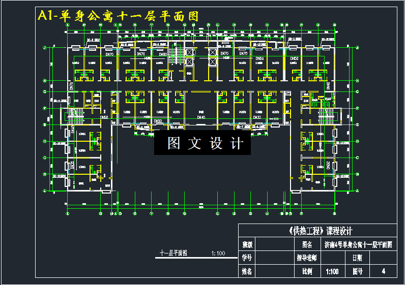 本工程为位于某市的十一层单身楼,并有一层地下室。每层层高3.6米。系统与室外管网连接,该工程采用机械循环单管上供下回式热水供暖系统,楼梯间不采取供热措施。城市供热外网(一次网):供回水温度:95℃/70℃;外网深埋-1.3m;建筑物30m处,资用压头10m水柱。对于本居民楼的热负荷计算,只考虑围护结构传热的耗热量、冷风渗透引起的耗热量和冷风侵入量引起的耗热量。