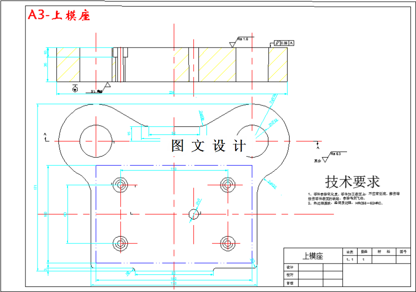 设计任务:1)拟定冲压工序安排方案、画出冲压工序图、画出待设计模具的排样图; 2)计算冲裁力、确定模具压力中心、计算凹模周界、确定待设计模具的有关结构要素、选用模具典型组合等,确定压力机吨位;3)设计及绘制模具装配图;4)设计及绘制模具零件图;5)按规定格式编制设计说明书。该零件结构较简单、形状对称,完全由圆弧和直线组成,利用普通冲裁方法可以达到零件图样要求。该零件为深锥形件(相对高度H/d=20/32.6=0.85>0.8),料厚t=1.5mm,拉深后厚度不变;零件底部圆角半径r=2mm,拉深直径公差为12级,其余尺寸公差都为自由公差,满足拉深工艺对精度等级的要求。