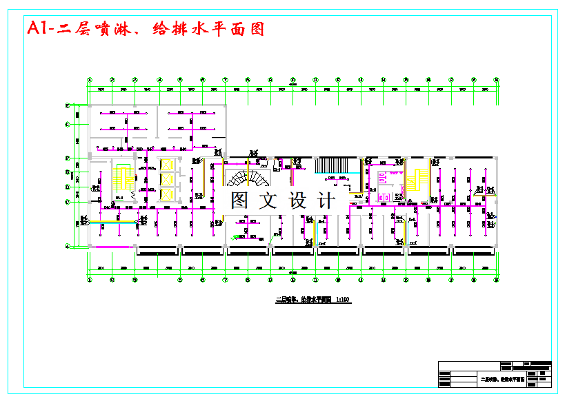 本设计是某市 12 层酒店建筑给排水设计,主要包括生活给水系统、排水系统、热水供应系统、消火栓系统、自动喷淋灭火系统和屋面雨水排水系统六个系统。给水系统采用分区供水,1 到 2 层为低区,由市政管网直接供水。3 层到 12 层为高区。采用下行上给的供水方式,由变频调速泵向高区管网供水;生活给水管管材选用塑料管。热水供应系统采用下行上给全日制机械全循环方式,系统竖向分区与给水系统相同。本酒店为一类建筑,火灾危险等级为中危 I 级。消火栓系统不分区,管材采用普通碳素无缝钢管。自动喷水灭火系统设一个区,管材采用热镀锌钢管。本工程污、废水系统采用合流制,室内±0.000 以上污废水重力自流排入室外污水管,地下室污废水采用潜污泵提升至室外污水管,排水立管采用伸顶通气方式和专用通气立管通气方式;排水管采用柔性排水铸铁管。屋面雨水采用重力流雨水斗,侧面外排引向室外周围地面散排。雨水管采用铸铁管。