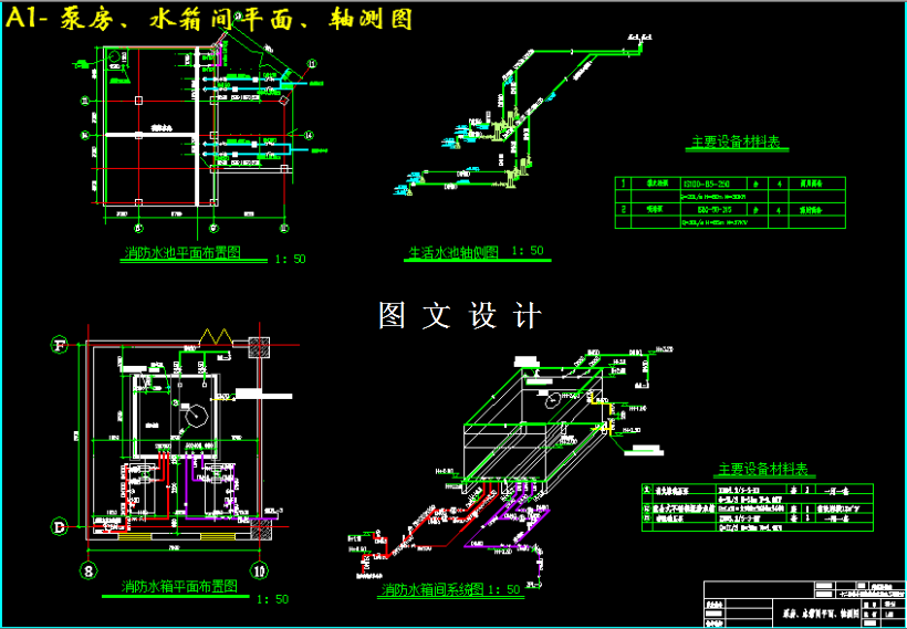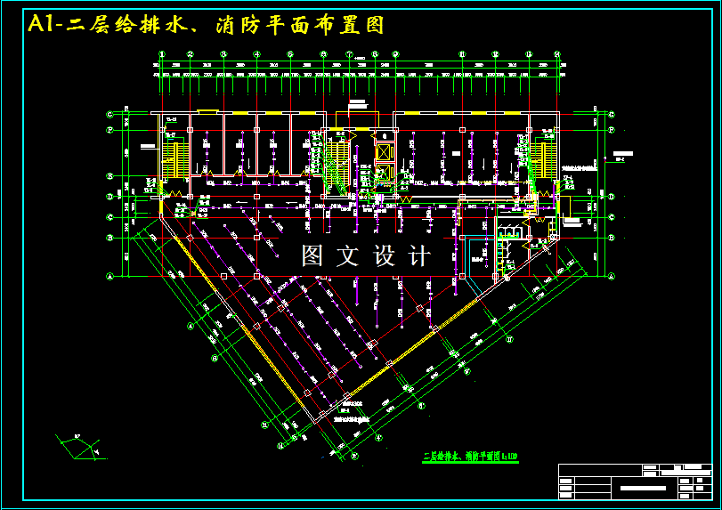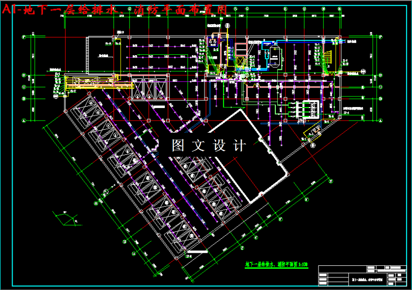本设计是某市某12层综合建筑给排水设计,主要包括生活给水系统、热水供应系统、消火栓系统、自动喷淋灭火系统、排水系统和屋面雨水排水系统六个系统。 给水系统采用分区供水,1到3层为低区,由市政管网直接供水。4层到12层为高区。采用下行上给的供水方式,由变频无负压调速泵直接向高区管网供水;生活给水管管材选用铸铁管。热水供应系统采用下行上给全日制机械全循环方式,系统竖向分区与给水系统相同。本建筑为二类建筑,火灾危险等级为中危I级,地下室为中危II级。消火栓系统不分区,管材采用普通碳素无缝钢管。自动喷水灭火系统不分区,管材采用热镀锌钢管。本工程污、废水系统采用合流制,室内±0.000以上污废水重力自流排入室外污水管,地下室污废水采用潜污泵提升至室外污水管,排水立管采用伸顶通气方式和专用通气立管通气方式;排水管采用柔性排水铸铁管。屋面雨水采用重力流雨水斗,侧面外排引向室外周围地面散排。雨水管采用铸铁管。