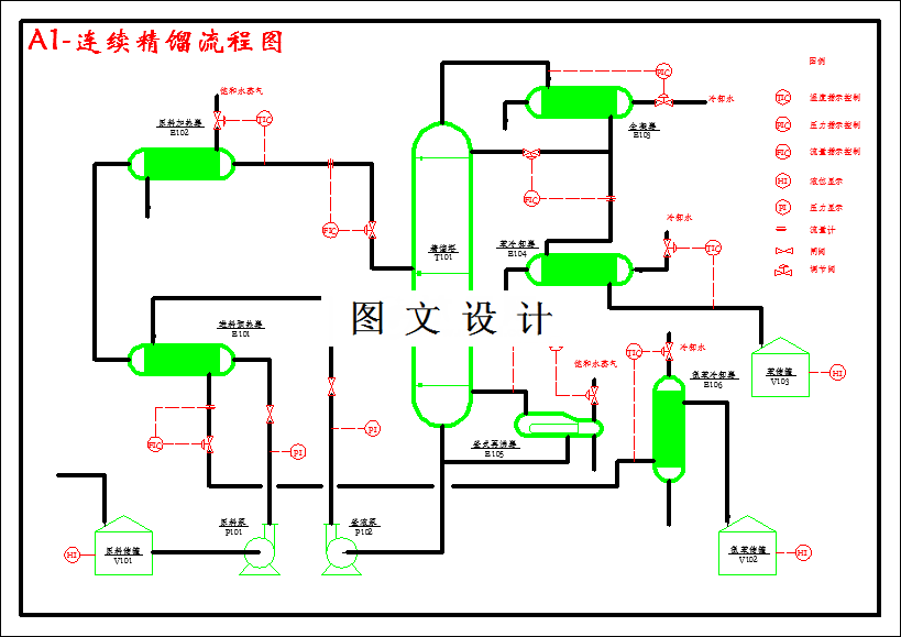本设计采用板式精馏塔分离苯—氯苯溶液,年处理量为30000吨,进料组成为(质量分数,苯)35%,塔顶产品组成(塔顶馏出液中苯含量)96%,塔顶产品中苯的回收率为99%。首先找出苯—甲苯溶液的气液平衡数据,然后利用Excel作图,得到最低回流比。接下来,选择可选的回流比,确定回流比为0.661。然后求得理论和实际塔板数的塔分别为14和29。我还计算了塔板的尺寸可以得到,0.8米直径的塔,塔的高度是12.4米。流体力学计算后,适用于该浮阀塔。通过计算塔的强度,得到塔的厚度,然后使用生产和分离的要求,以确定大小的附属设备的塔。