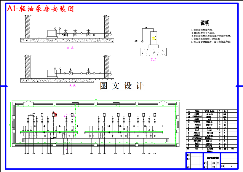 本次设计为某石油油库油库规划与工艺设计。该设计选址为肥西县,油库规模: 12-14万立方米,其中汽油6万立方米、柴油7万立方米、煤油3千立方米,润滑油2千立方米。设计方案在运河设计水运码头,并设有消防水罐、泵房等;南部设陆路发货场(设汽、柴、煤三种油品的鹤管装车货位)。本油库设计工程规划建成后可为周边地区提供优越的油品储存与传输条件,以缓解目前苏北地区商业油库存储容量小,现有油库周转系数过高的问题。由于油库具有危险性,设计除满足库区储运作业功能外,严格按照有关标准规范的要求,充分考虑到防火、防爆、防污染的要求,设置了消防系统以及自动控制系统等。本次设计范围包括成品油储罐区油罐容量及数目的确定、收发油管道工艺设计、清油泵房及陆路发货场的计算与安装,以及库内消防系统的设计。同时,对所选的各种设备进行了校核,确保其使用性能,使库区具有较强的适应性,同时提高了设备的利用率。