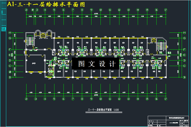 本设计是十一层宾馆的建筑给排水设计,主要包括给水系统、排水系统、消防系统、热水系统。给水系统采用分区供水,一到二层为一区,由市政管网直接供水;三层到十一层为二区,由水泵从地下贮水池加压供水,并设变频调速装置。排水系统采用污、废水分流制,坐便器出水直接排入市政污水管网;底层单独排水,排水立管设专用通气管。消防系统主要采用室内消火栓系统,火灾初期10min消防用水量由屋顶消防水箱供给,消防水箱的水源由生活水泵从生活水池抽取;10min后的消防启动消防水泵,从消防水池抽水供消火栓使用。热水系统采用闭式机械循环系统,热水的分区系统同冷水系统;采用集中热水供应,热源来自市政热媒管网(0.25MPa),冷水经过容积式加热器加热后由提升泵供向配水管网。排水系统采用螺旋消能排水管材,就近排入市政污水管网。