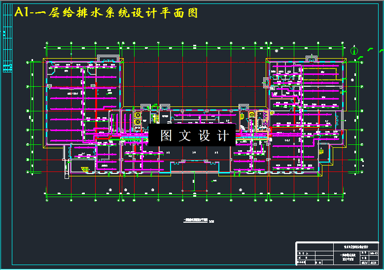 本设计为南京市某十层宾馆给水排水工程。该建筑地上十层,地下一层,建筑高度48.5m。设计内容包括给水系统,消防系统,热水系统,排水系统。给水系统采用分区给水,一层至三层为低区,由市政给水管网直接供水;四至十层为高区,由屋顶水箱供水,采用上行下给的供水方式。消防系统分为消火栓系统和自喷系统。消火栓系统不分区,采用水箱和水泵联合供水的临时高压给水系统。自喷采用湿式自动喷水系统,一层至五层为Ⅰ区;六层至十层为Ⅱ区。热水系统的分区与冷水系统保持一致,水加热器集中设置在地下一层。排水系统采用污水和废水合流制排水系统,生活废污水经化粪池局部处理后再排入市政排水管网。各系统均采用设计秒流量来确定管径,依照建筑给排水设计规范来进行管道布置和敷设。