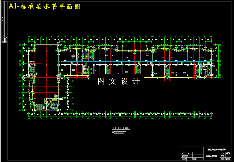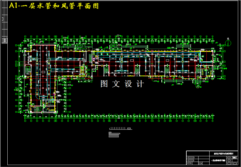本设计为山东省某六层研发中心中央空调系统工程设计,建筑共六层,建筑总面积13641.8,空调面积9457,总冷负荷为812.84KW,总热负荷为715KW.根据房间功能,全楼采用集中供给空调方式,制冷机组采用蒸汽型双效溴化锂吸收式制冷机组一台,型号为SXZ6D9,制冷量为930KW. 冬季供暖采用板式换热机组一台,型号为ZBR20,制热量为720-800KW.根据房间建筑结构,将该集中系统分为二种空调送风方式,大空间如一层展示大厅,其它层研发室一等采用全空气系统,新风直接从室外引进与回风混合(一次回风)后送风;其它各室等采用了风机盘管加独立新风系统,新风机组从室外引入新风处理到室内空气焓值,风机盘管承担室内全部冷负荷及部分的新风湿负荷。全空气系统选用方型散流器顶棚贴附射流形式,风机盘管加独立新风系统则采用侧送风的形式。水系统采用闭式双管式,冷水泵两台,一用一备;冷却水泵选两台,一用一备。