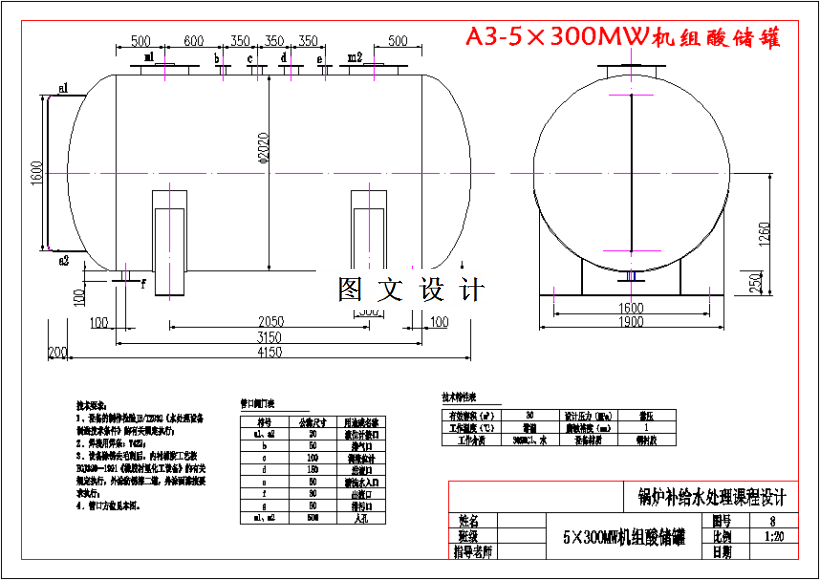 此次水处理课程设计根据机组要求对其水处理系统进行设计计算,基本能够达到改善锅炉补给水水质,使锅炉的水汽品质控制在合格指标以内,以满足锅炉补给水的要求,从而减缓锅炉炉内的结垢和腐蚀,延长化学清洗周期。目的在于进一步巩固和加深我们的理论知识,并结合实践,学以致用。通过对火力发电厂锅炉补给水处理课程设计,使我们了解火力发电厂锅炉补给水处理的流程设备及管道的流向。补给水处理工艺流程是根据原水为中山电力公司水样、出水水质要求和机组容量的大小等因素综合确定的。 (1)原水水质悬浮物含量(实际含量126.00mg/L)大于50mg/L。因此需要采用澄清池,过滤系统应用单层(石英砂)无阀滤池,采用接触混凝过滤方式,在反洗过程中,可以自动进行,无阀滤池的滤后水位位于滤池上部,便于操作人员观察,若水质不合格,能及时发现,及时处理,确保出水水质达标,其截污能力大,运行周期长,运行中水头损失增长较慢,实践中应用效果良好。 (2)原水碳酸盐硬度为1.74mmol/L<3mmol/L因此无需采用弱酸阴离子交换器。 (3)根据计算原水中强酸阴离子浓度为1.22mmol/L<2mmol/L,可以不设置弱碱阴离子交换器,但考虑水中有机物的含量,为保证水质应设置弱碱阴离子交换器。 (4)除盐系统先采用弱碱—强碱复床+阳床一级除盐+混床交换系统,出水水质好能达到锅炉运行的要求。考虑经过无阀滤池混凝后,带入多余的强酸阴离子,强碱阴床不太符合水质要求,所以改用复床。