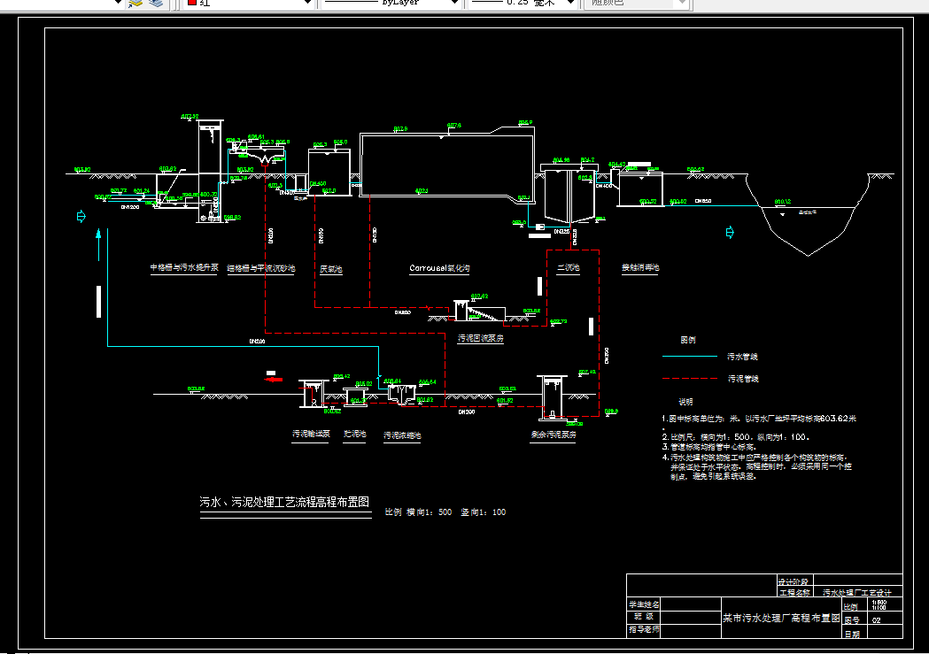本设计对处理工艺进行了详细的论述说明和计算,对平面高程布置、单体构筑物进行了详细的设计,并完成了污水处理站经济投资、运行费用的概算。