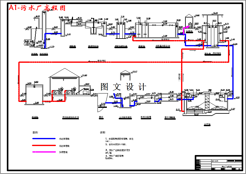 本设计是普宁市北城区的排水工程。其中包括两部分。即,城市排水管网系统的设计和城市污水处理厂的设计。根据城市所处的地理位置和污水厂的规模,并结合考虑脱氮除磷的要求。城市污水处理厂采用厌氧池-卡罗塞尔氧化沟工艺。该工艺污水处理流程为:中格栅→提升泵站→细格栅→沉砂池→厌氧池→卡罗塞尔氧化沟→二沉池→消毒渠→出水排放。污泥处理流程为:污泥→污泥提升泵站→贮泥池→污泥浓缩脱水机房→泥饼外运,通过此工艺的处理,出水水质将达到《城镇污水处理厂污染物排放标准》(GB18918-2002)一级B标准。