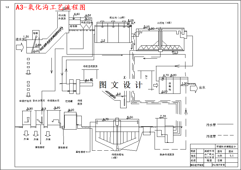 设计题目:8万m3d污水处理厂工艺设计 设计任务与内容: 1.污水处理工艺选择及各工艺单元的设计,包括工艺流程的确定,各单体构筑物的工艺设计。 2.污泥处理方法选择及污泥处理构筑物的工艺设计计算。包括工艺流程的确定,单体构筑物的工艺设计; 3.污水泵站的工艺设计,包括选泵、泵站工艺设计计算; 4.污水处理厂的平面布置。包括污水处理厂处理构筑物和辅助建筑物的平面布置图及工艺平面图绘制; 5.污水处理厂竖向布置及调和计算。 6.工艺流程图、高程布置图、平面布置图、重要构筑物图、重要设备安装图等的绘制。