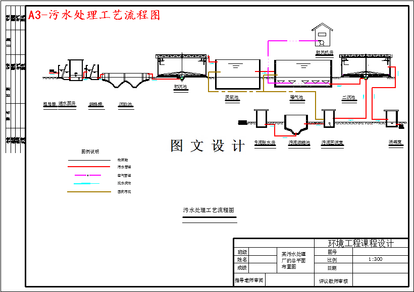本次为为某地设计一处理程度达到80%的污水处理厂,处理水量为56000 m3/d,污水水质:(经24小时逐时取样混合后 BOD5=200mg/L; SS=250mg/L;CODCr=250mg/L; pH= 6~8 色度= 60度; NH3-N= 50 mg/L ;PO43- = 6 mg/L要求达到的处理程度η= 80% 处理后污水排入水体。现状:该厂污水未经处理即排入河流,已造成河流严重污染,等待解决,并要对可能的污染源进行控制。根据其水质特点,我选用了A/O工艺。A/O工艺是现今主流工艺,A/O工艺包括A/O除磷工艺和A/O脱氮工艺,它们对磷、氮的去除率分别达到90%以上和80%左右;而A2/O工艺不能同时高效除磷脱氮。选择A/O工艺,处理效果好,成本低,技术成熟,很适合这次的设计要求。