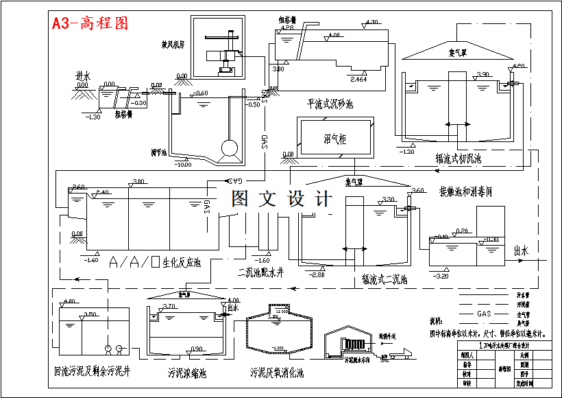 某地区污水厂设计: ⑴ 设计流量:10000m3/d=416.7m3/h=0.12m3/s ⑵ 水质特点:COD为250mg/L,SS为200mg/L,BOD5为150mg/L ⑶ 根据广州市污水排放标准(DB44 37-90),设计出水水质: COD≦40mg/L, BOD5≦30mg/L,SS≦30mg/L ⑷ 主要风向:年主导风向为东南—西北向,夏季多偏南风,冬季多偏北风。 ⑸废水来源与水质特点:废水主要是来自居民生活污水和市区内的工业废水,该工业废水在排入市政管网之前已经过适当处理,并达到国家二级排放标准,可直接排入污水处理厂进行进一步处理。该生活污水和工业废水经市政排水管网收集之固定排放口。本次设计任务即为收集后的废水进行处理。