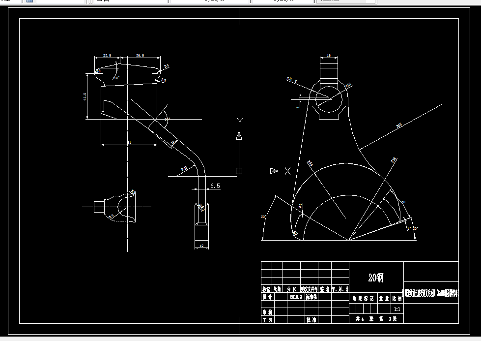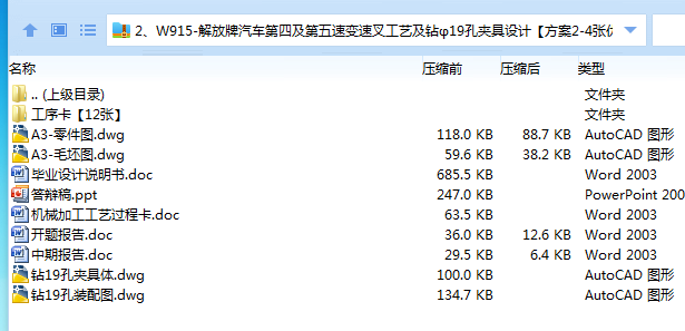 本次设计是汽车变速箱中变速叉零件的加工工艺规程及一些工序的专用夹具设计。此变速叉零件的结构较为复杂,其加工的地方主要是孔和平面。本设计先加工孔后加工面。将孔与平面的加工明确划分成粗加工和精加工阶段以保证它们的加工精度。基准选择以变速叉右面的最大的平面作为粗基准,来加工中间的通孔,然后以此加工过的孔作为精基准。主要加工工序安排是先以中心孔定位加工出顶平面和右侧平面以及下面的大孔的两平面,再以中心孔定位加工出下端的大孔。加工时是用镗床镗孔。最后以这两个孔为基准,分别加工右侧的槽和顶面的螺纹底孔。整个加工过程选用了钻床、铣床和镗床。工件在机床上定位夹紧选用专用夹具,夹紧方式为手动夹紧,夹紧可靠,操作方便。因此生产效率较高,适用于中批量、流水线上加工。能够满足设计要求。