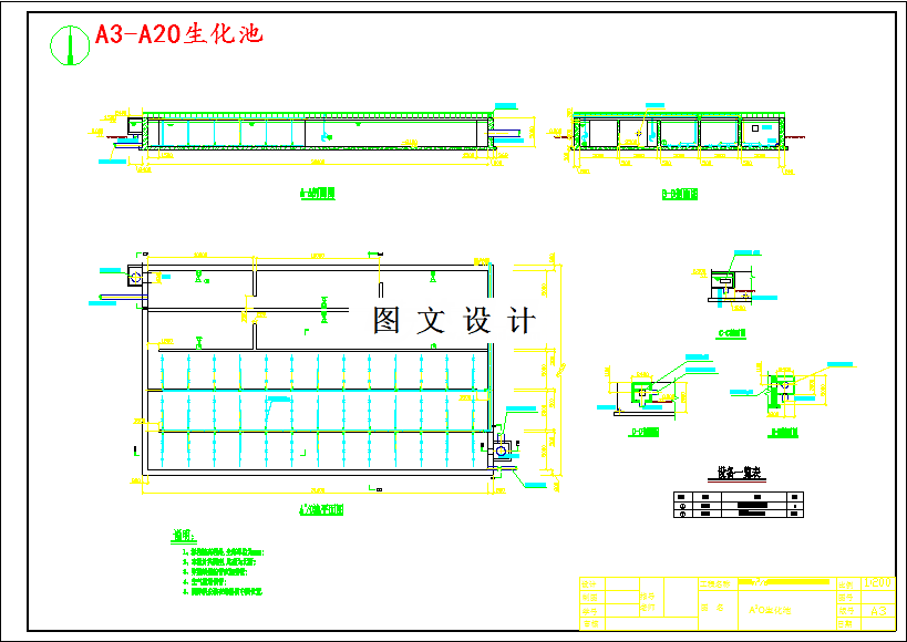 本设计要求处理水量为10000m3/d的城市生活污水,设计方案针对已运行稳定有效的A2/ O活性污泥法工艺处理城市生活污水。A2O工艺由于不同环境条件,不同功能的微生物群落的有机配合,加之厌氧、缺氧条件下,部分不可生物降解的有机物(CODNB)能被开环或断链,使得N、P、有机碳被同时去除,并提高对CODNB的去除效果。它可以同时完成有机物的去除,硝化脱氮、磷的过量摄取而被去除等功能,脱氮的前提是NH3--N应完全硝化,好氧池能完成这一功能,缺氧池则完成脱氮功能。厌氧池和好氧池联合完成除磷功能。