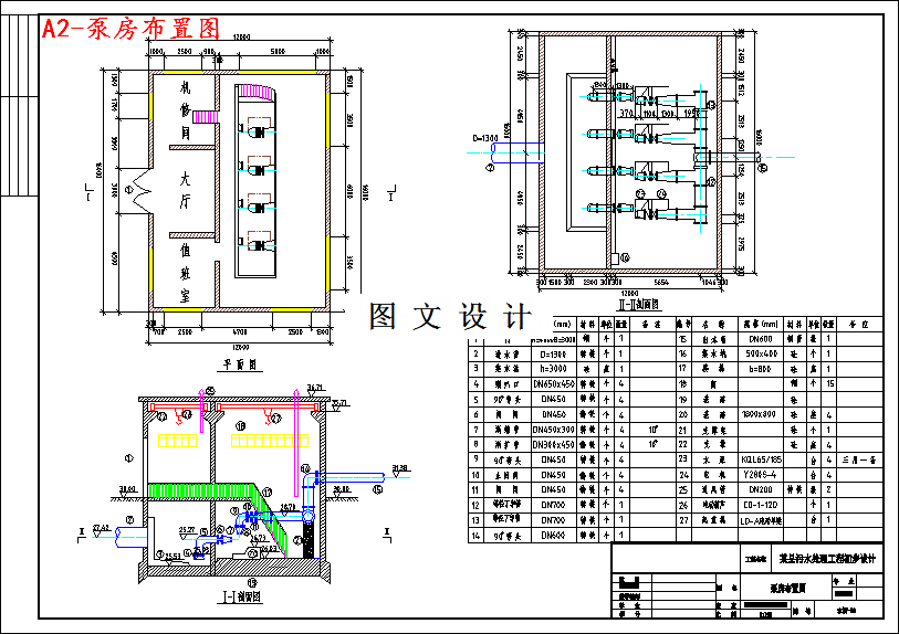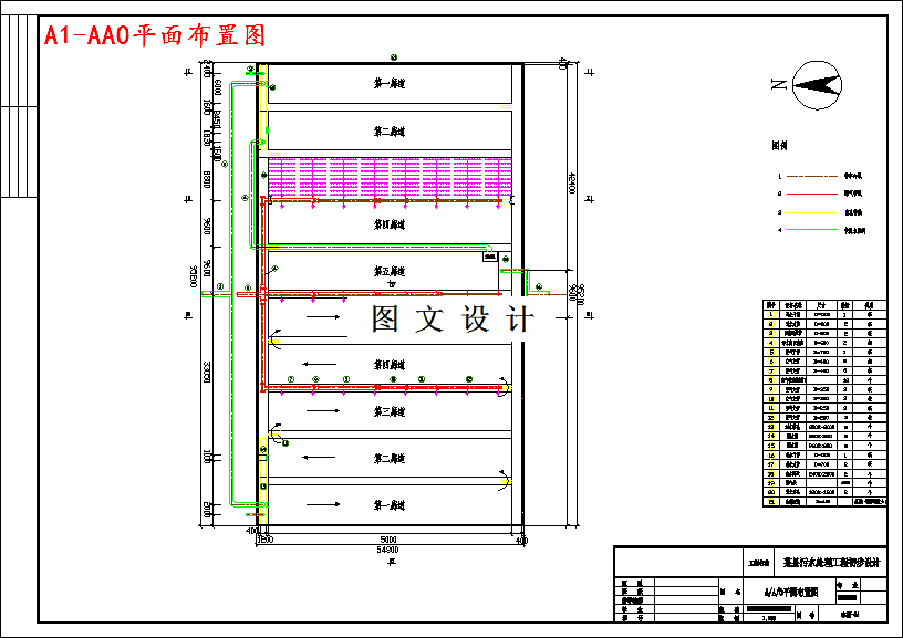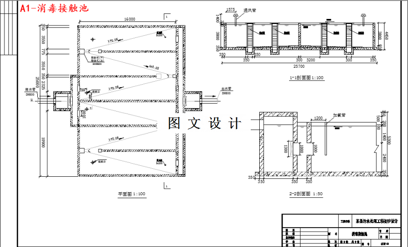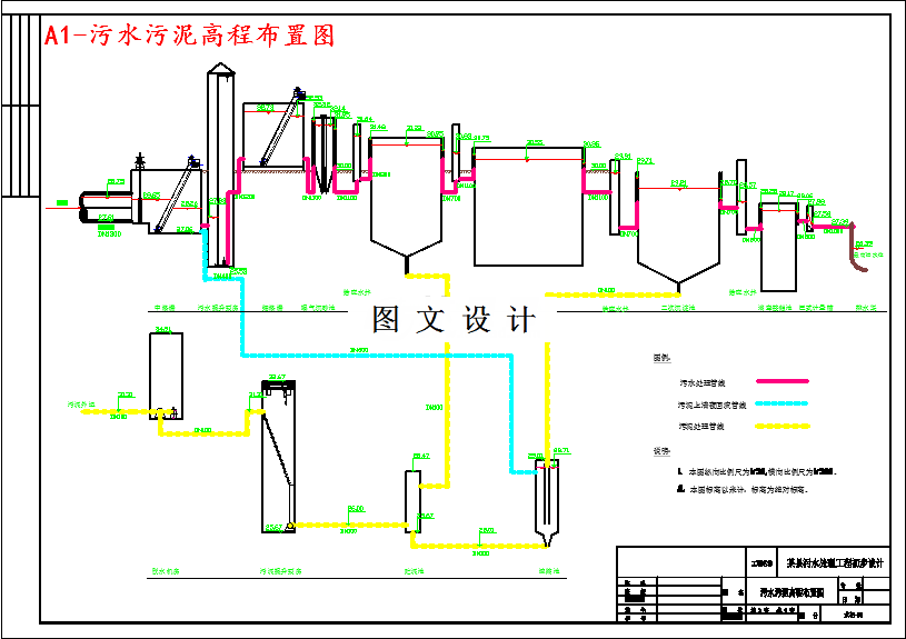 本设计是某县的排水工程。设计要求完成城市给排水系统总平面图、污水处理厂总平面布置图一张、污水厂污水与污泥处理高程图一张、污水总泵站或中途提升泵站工艺施工图一张,污水与污泥主要构筑物工艺图两张;单项处理构筑物工艺图设计中,主要是完成A2/O反应池的平面图和剖面图。该污水处理厂工程,总规模达到6万吨/日。污水厂设计方案为:污水处理流程:粗格栅 → 污水提升泵房 → 细格栅 → 曝气沉砂池 →初次沉淀池→ A2/O反应池→二次沉淀池→消毒接触池 → 计量槽 → 排放;污泥处理流程:剩余污泥 → 浓缩池 → 贮泥池→ 提升泵房→污泥脱水机房 → 泥饼外运。通过此设计,污水处理厂建成后,本市的水污染问题能得到较好的解决,产生良好的环境效益,同时也会收到很好的经济效益和社会效益。