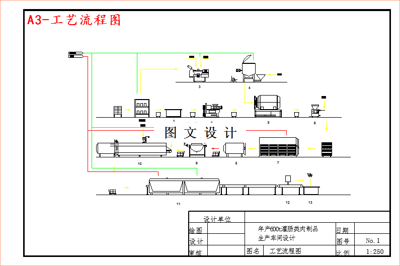 本设计承担了年产600吨灌肠类肉制品生产车间设计,整个工厂的设计涉及以下内容:产品市场分析、原材料供应、厂址的选择、工艺设计及论证、生产方案与产量、物料衡算、热量衡算、设备选型与计算、车间的平面布置以及环境保护等。车间设计主要包含两种肉灌肠产品:香辣香脆肠和台式烤香肠。按照设计任务书的要求大量收集了各个方面的资料,将厂址确定在江苏无锡。根据工厂的实际生产情况确定本厂每年实际生产日期为300天,每天产量为2吨,确定生产班数为一班,每班产量2吨。坚持技术上先进,经济上合理,设计上规范的设计原则。在厂区的划分以及车间布置方面,做到既能满足计划产品的生产,又照顾到未来发展,既满足工艺要求,又照顾到建筑施工的可行性。在选型设备方面,尽量选用自动化机械设备,为生产的操作化单元和标准化提供良好的条件,进而实现较高程度的自动化生产。