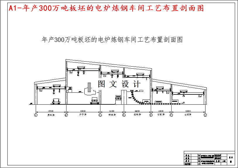 本设计主要是为了阐述当今电弧炉的发展概况以及电弧炉未来发展前景,结合本专业所学的理论知识,设计年产300万吨带钢的电弧炉炼钢车间,根据国内外炼钢技术的发展趋势、钢铁产品的发展方向,选择了先进且有较大发展余地的短流程工艺:废钢、炼钢生铁、造渣材料 → 超高功率电弧炉 → LF精练炉 → 连铸机 → 精整 → 轧制。通过产品大纲的确定、电弧炉炼钢的物料平衡与热平衡计算、电弧炉的炉型设计、连铸设备选择、车间工艺设计及车间总体布置,确定了以两座190吨超高功率电弧炉、两台200吨LF精炼炉及两台二机二流连铸机为主要生产设备。设计方案以技术新、效益高为原则,充分体现了先进、灵活、多功能的特点,具备可持续发展性。