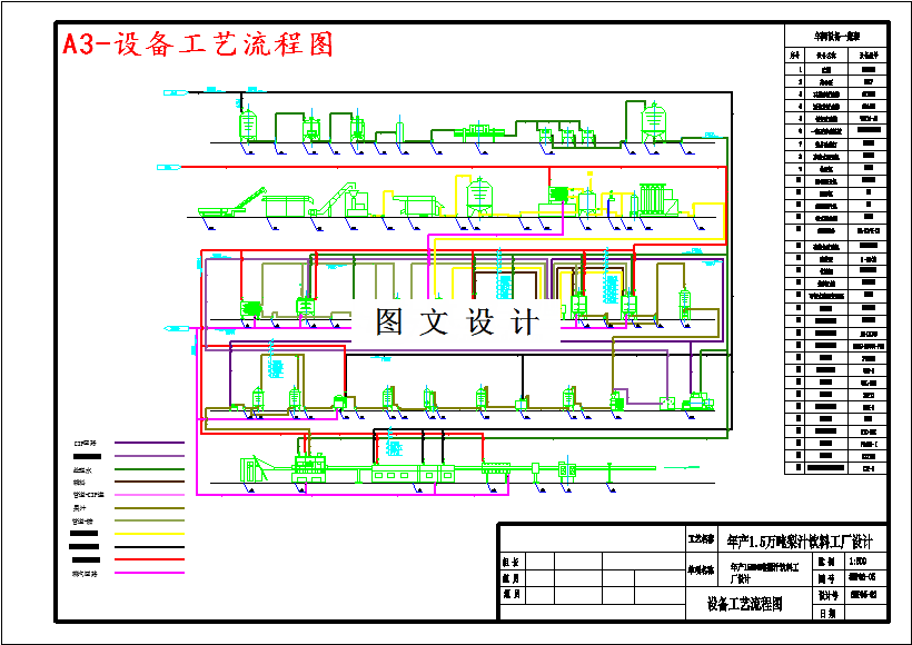 日产量,班产量及平均产量预算 (1)本设计为年产量15000t。 (2)本设计年生产天数为300天。 (3)产品合格率按98.5%(取梨汁饮料厂经验数据)。 l5000÷98.5%=15228.43(t/年) 则实际年产量为:15228.43t。 (4) 15228.43÷300=50.76(t/日) 平均日产:50.76t 实际每班产量为 15228.43÷753=21吨/班 按设计要求平均班产量取21吨/班。 平均每小时产量计算 在本设计中,每班生产工作时间为8个小时,则有: 每小时产量=班产量(吨)÷有效生产时间(小时)=21( 吨 / 班) ÷ 8(小时)=2.6(吨/小时) 设备选型按每小时2.6吨加工量为基础。