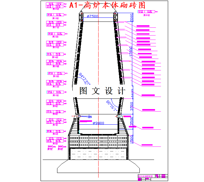 本设计是根据石钢燃料条件,设计生产年产280万吨炼钢生铁的炼铁厂。主要包括车间选址、车间平面布置、高炉座数的确定、高炉本体设计、高炉上料系统设计、高炉炉顶装料系统设计、高炉热风系统设计、高炉煤气系统设计、高炉渣铁处理系统设计、高炉喷吹燃料系统设计、高炉冶炼综合计算。设计的高炉有效容积是2017m3。其中高炉的炉衬设计方法采用的是均衡炉衬的方法,根据不同的冶炼条件砌筑不同的砖。上部采用的砖型有高砖,下部采用的是全碳砖炉底。冷却方式:炉身部分采用板壁结合的方式炉腰部分采用凸台冷却壁;炉缸和炉底采用光面冷却壁和水冷炉底结构。设计的热风炉采用传统改进型内燃式热风炉。蓄热式和燃烧室在同一炉壳内,中间用隔热墙隔开;采用眼睛型燃烧室。这部分同时包括热风炉各种设备和阀门的选取计算。上料系统采用的皮带机连续上料,同时增加了皮带的速度和宽度,满足高炉冶炼的要求。炉顶装料设备采用串罐式无料钟炉顶装料。喷吹系统增加了煤的数量,采用了单管路串罐式直接喷吹。煤气处理设备采用的是湿法除尘设备。所涉及的计算有高炉和热风炉尺寸的计算、高炉的物料平衡和热平衡计算以及热风炉风机的选择等。