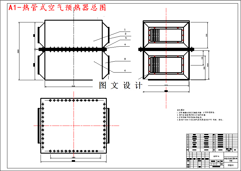 本次设计是35t/h锅炉热管式空气预热器。采用450根32×3、加热段长1.0m、冷凝段长0.9m、绝热段0.1m的热管,对总热量852kJ/s的烟气热量进行回收,回收的热量用于加热助燃空气,可以使其温度从25℃提高到80℃,而把排烟温度从162℃降低到110℃,从而降低了烟气进入大气的温度。这种带翅片热管加热段的传热系数为 820W/(m2·),冷凝段传热系数为743W/(m2·),单根热管的平均热负荷为1.89kW,远小于最大允许单根传热量;所设计的热管空气预热器烟气侧酸露点温度为,低于排烟温度,因此不会出现酸露点腐蚀;所设计的热管空气预热器烟气侧最低壁温为,高于水的露点,因此不会出现水的露点腐蚀;而且根据强度对耐压的要求计算出来的壁厚为1.05mm,远小于实际壁厚3mm,设计符合要求。因此,采用热管式空气预热器作为烟气换热器,用于加热助燃的冷空气,设计是可行的,完全可以达到完善锅炉的燃烧性能、减少燃料的消耗、节能的目的。