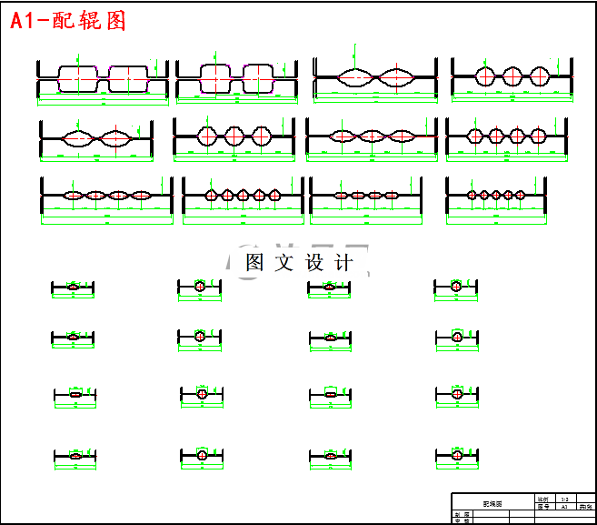 根据设计任务要求,进行年产50万吨高线车间设计。设计参考众多国内外先进的线材生产厂,由任务书产量要求,选择高速线材生产方式。设计内容包括建厂经济依据、产品大纲分配、原料选择、出口速度选择、道次选择、轧机比较及选择、孔型系统设计、速度计算、温降计算、力能计算、轧辊校核、加热炉等辅助设备选择等。为保证高速下顺利轧制,全线为平立交替布置,轧件无扭运行,尽可能减少事故隐患。粗中轧机采用高刚度二辊短应力线轧机,预精轧机前两架短应力线轧机,后四架采用悬臂式轧机,这样可以安装高硬度耐磨碳化钨辊环,延长轧辊孔型寿命,保证最终产品精度。精轧机组采用8架方案,皆为超重V型悬臂成组传动轧机,出口安装4架减定径机,保证轧制速度高并且尺寸精确稳定。 车间工艺与设备选择能够高精度生产Φ6高线。